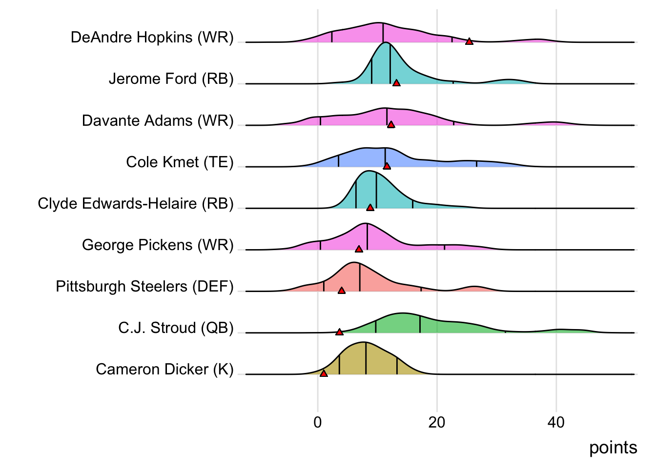 Since Hopkins was the leading point-getter for Sorocaba Steelers, it means a different player has now topped the team in each of the past five weeks. With 17.26 points, Kyler Murray paced the squad in Week 10, while Davante Adams put up 21.20 points to lead the way in Week 11. C.J. Stroud (30.86 points) was tops in Week 12 and DeVonta Smith (24.60 points) led last week.