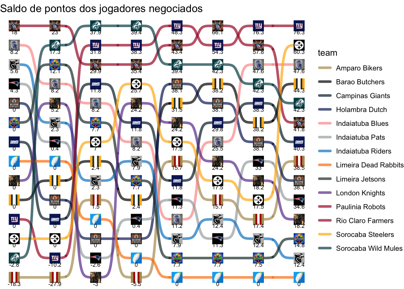 Total de pontos que foram deixados de ganhar na melhor escalação possível, acumulado ao longo das rodadas.