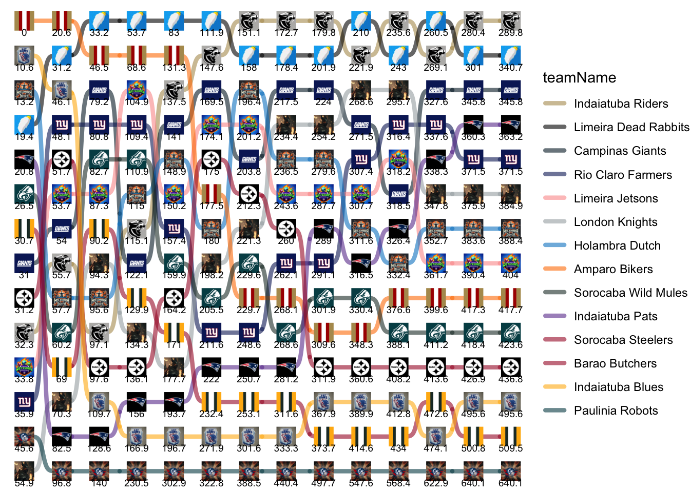 | teamName | 1 | 2 | 3 | 4 | 5 | 6 | 7 | 8 | 9 | 10 | 11 | 12 | 13 | 14 |