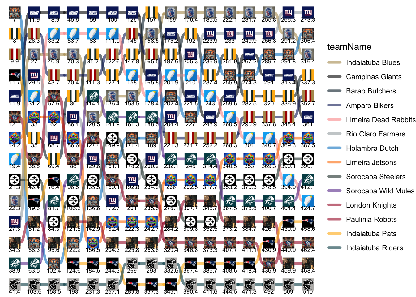 | teamName | 1 | 2 | 3 | 4 | 5 | 6 | 7 | 8 | 9 | 10 | 11 | 12 | 13 | 14 | 15 | 16 |