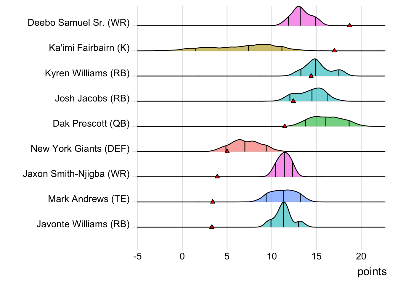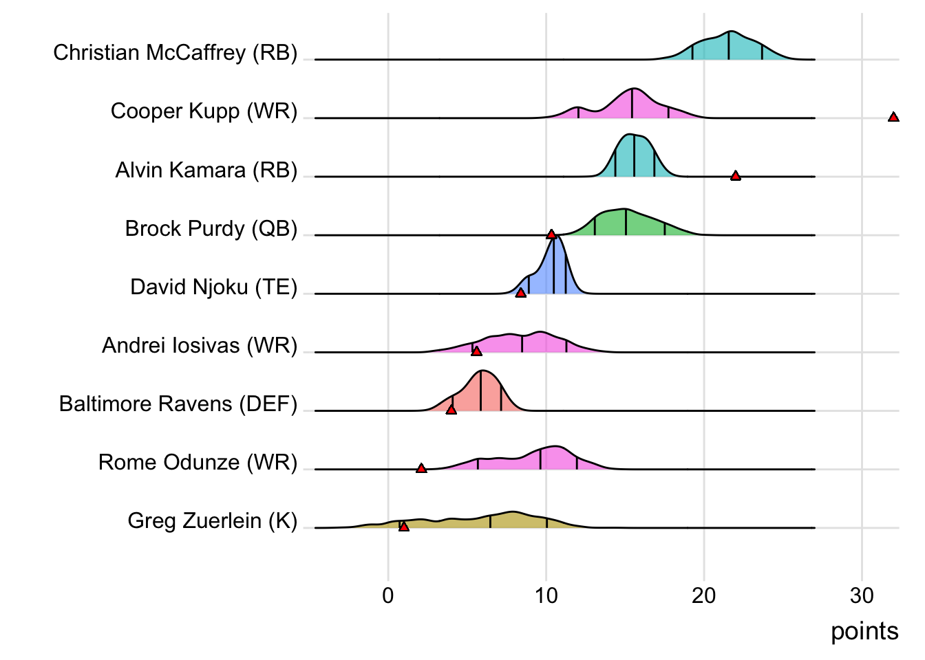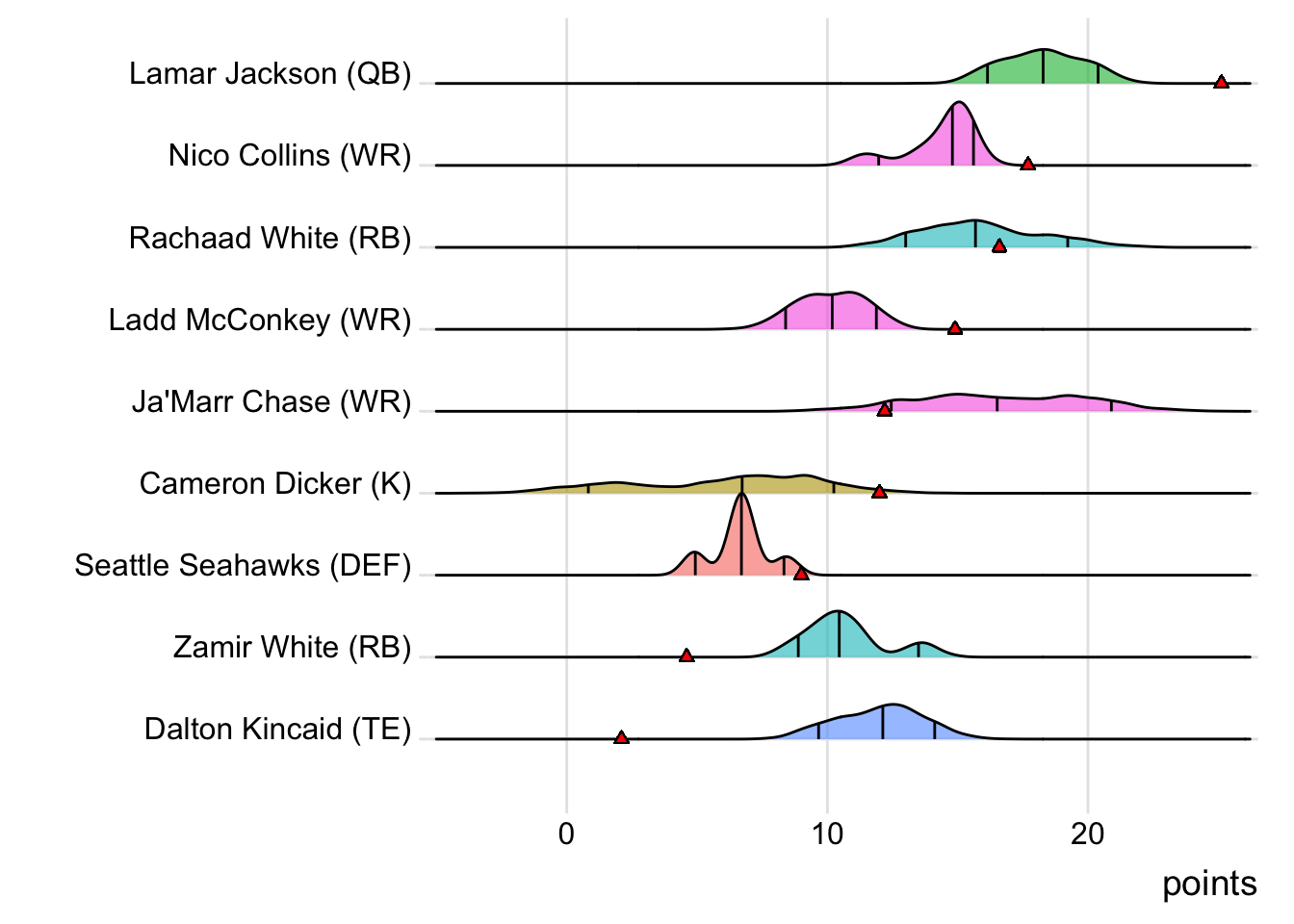 First-round draft picks only averaged 15.02 points this week. Second-rounders put up an average of 12.89 points, while players chosen in the third round averaged a superb 16.48.