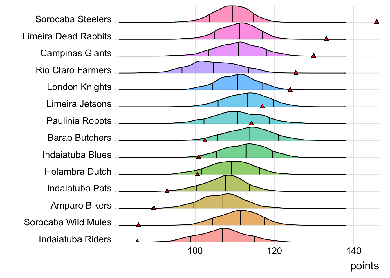 The 145.76 points scored by Sorocaba Steelers represented the highest total in the league this week.