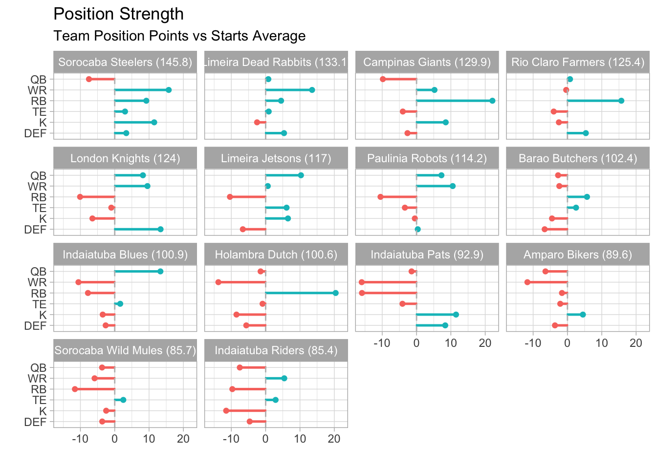 Sorocaba Steelers and Amparo Bikers each got wins this week despite not starting a top-15 scoring QB.