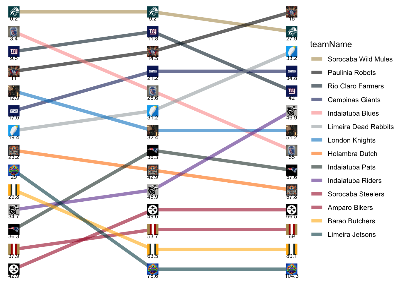 | Indaiatuba Riders | 34.70 | 11.20 | 1.00 |