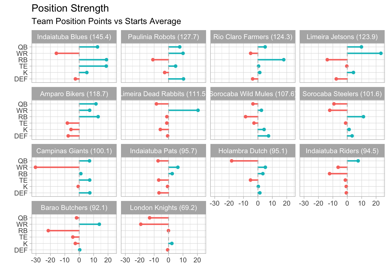 Sorocaba Wild Mules and Sorocaba Steelers both won this week, even though neither had a top-15 scoring QB.