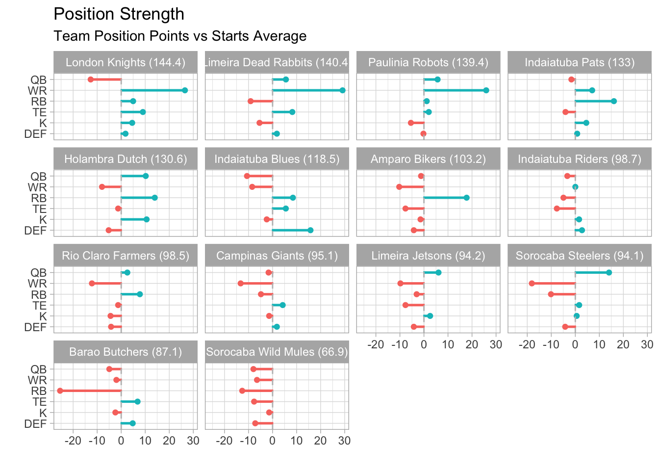 Limeira Dead Rabbits was favored by the widest margin in the league this week (17.07 points) and delivered with a 37.16-point victory.
