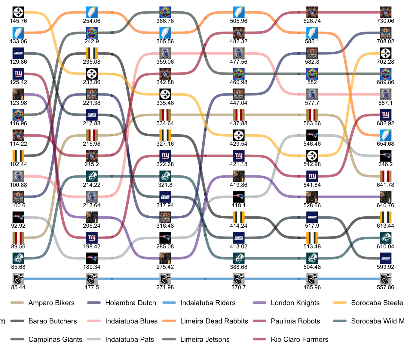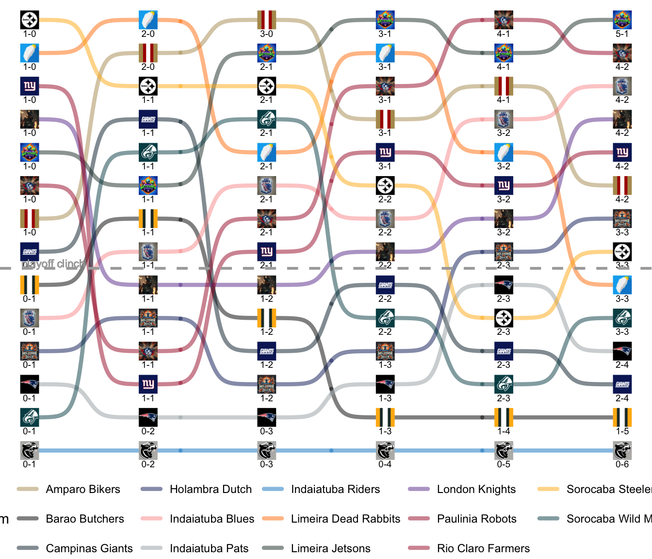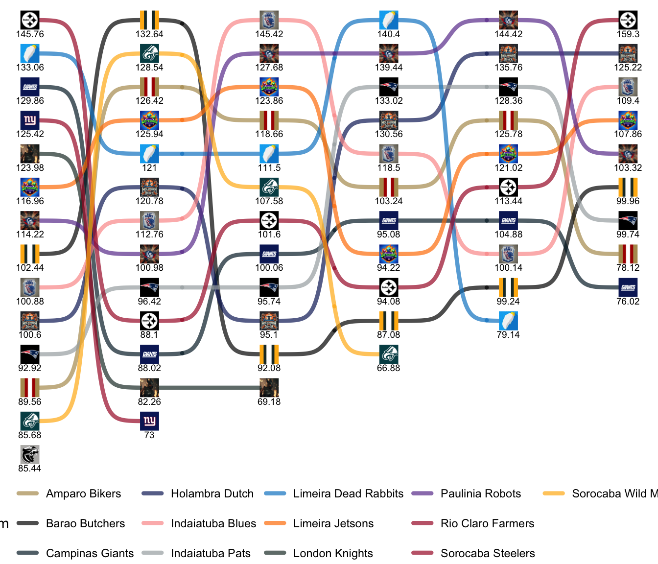 League Leaders: Jetsons, Robots, Blues, Knights, Farmers, Bikers.