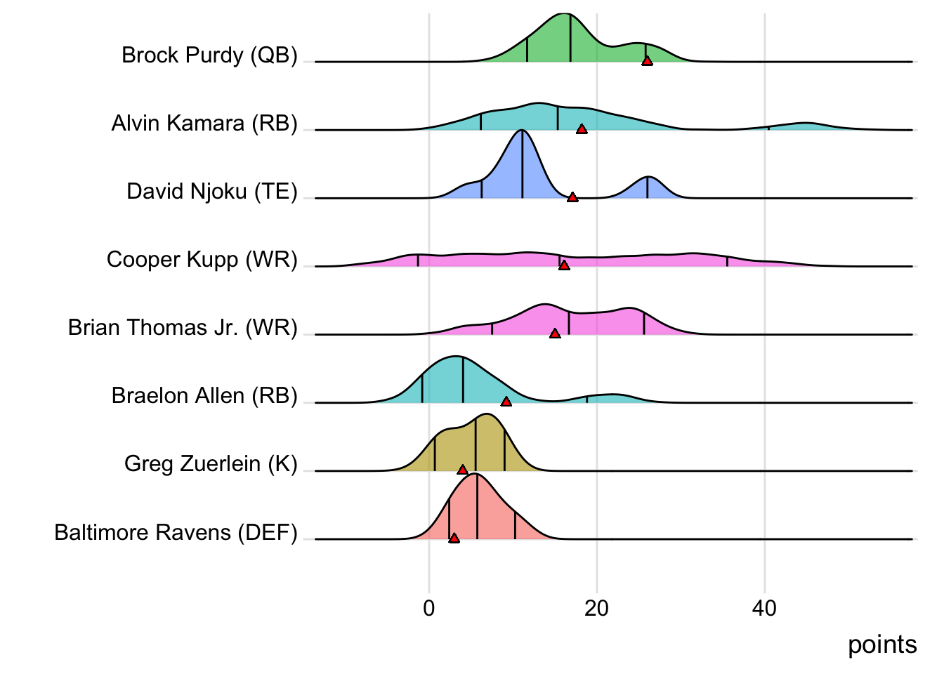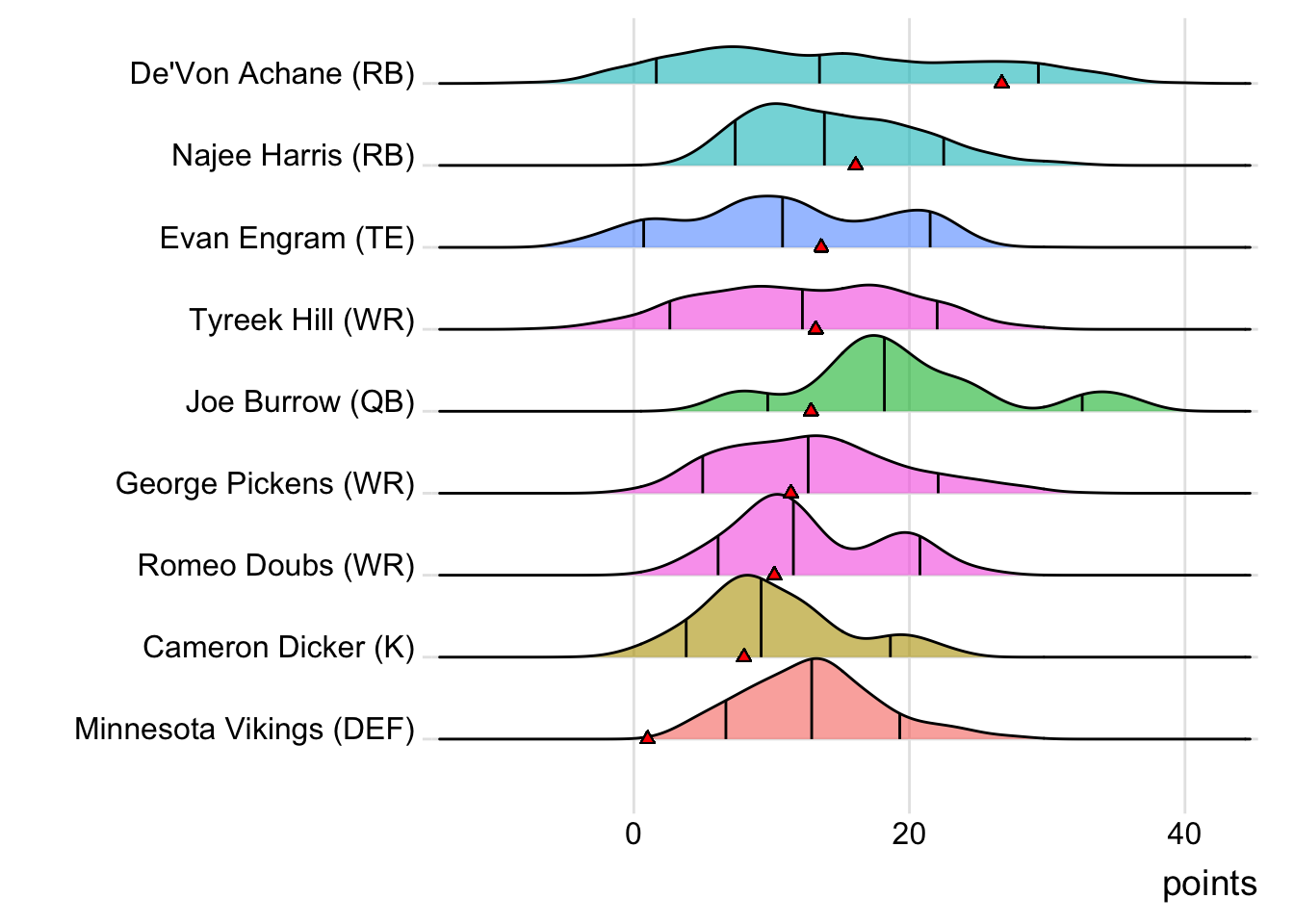 While Amon-Ra St. Brown led Barao Butchers matches (with 25.20 points), Kittle has now been the team’s top scorer in two of the last three weeks. Additionally, with 29 touches this week for Joe Mixon, it means that his touches have now increased in three consecutive games.
