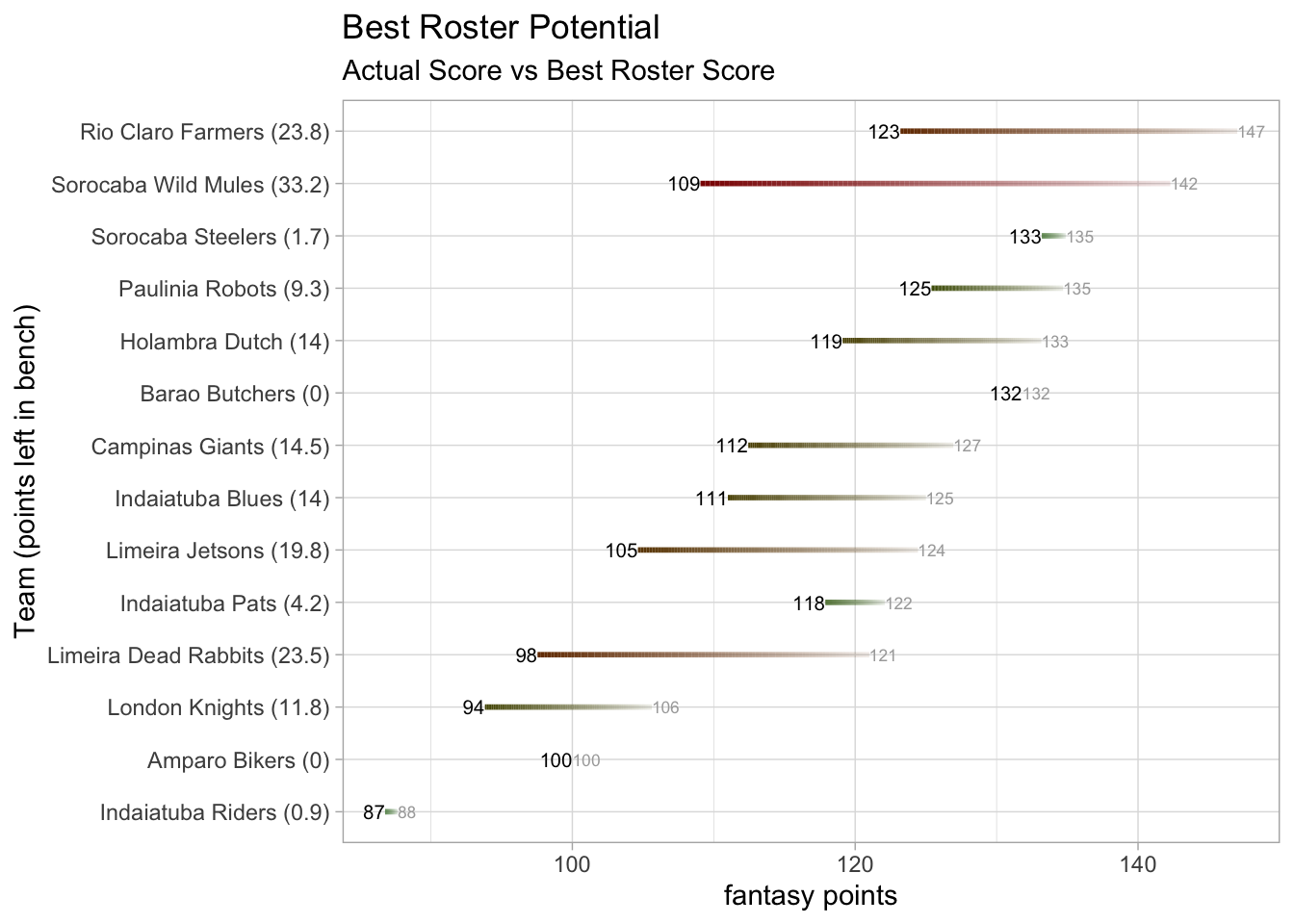 Barao Butchers beat their projections by a higher percentage than anyone else in the league this week. They put up 131.82 points when they were only projected 95.39.
