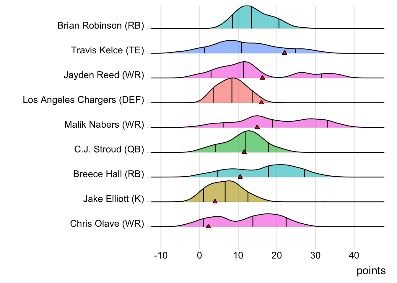 There was one player on Paulinia Robots that failed to capitalize on opportunites. Despite being targeted 10 times, Dalton Kincaid could manage just four catches. A position where Paulinia Robots wishes they could go back and change the past is wide receiver. Ladd McConkey could have started in place of Puka Nacua, and that point difference would’ve ultimately changed the outcome.