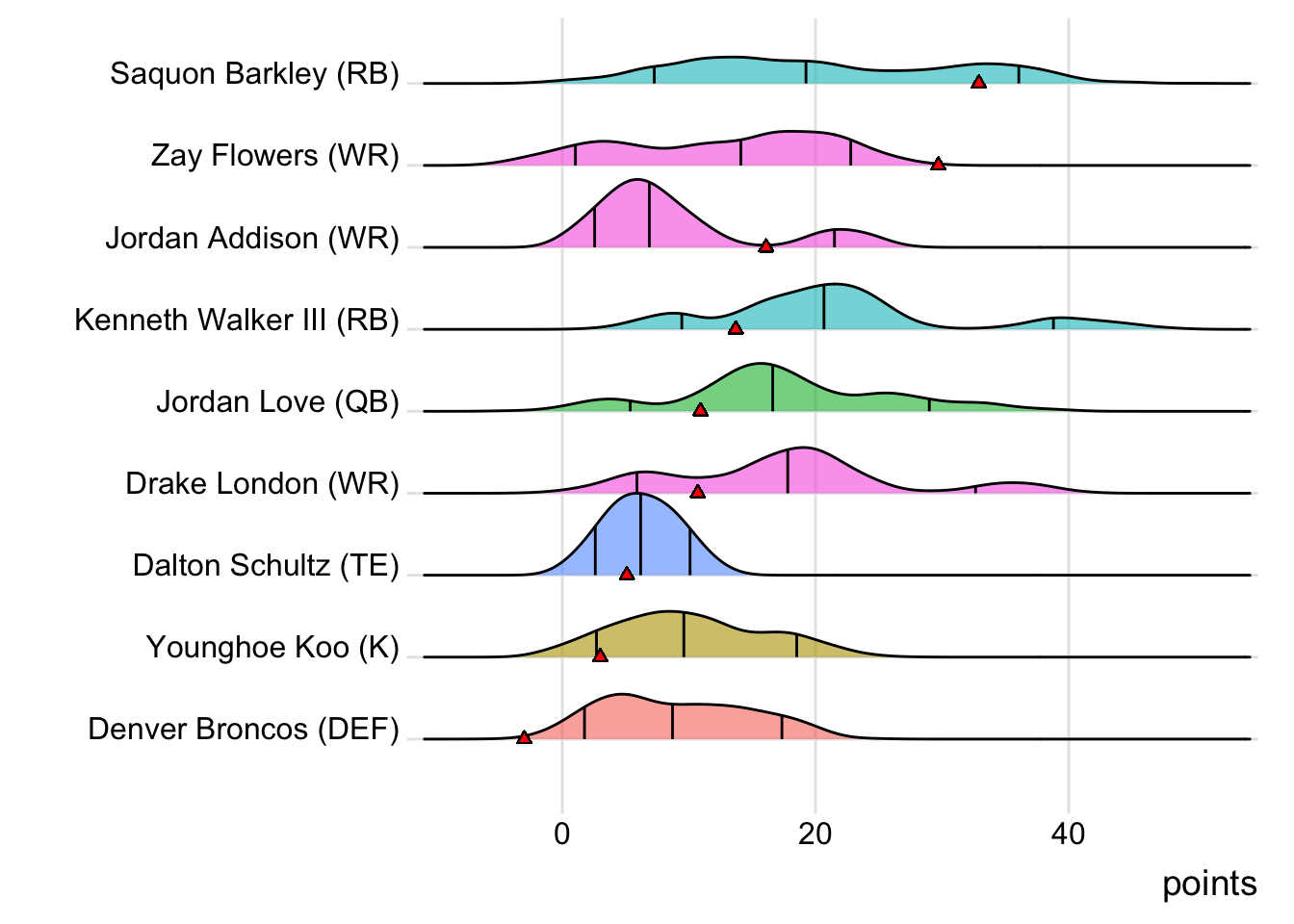 While Zay Flowers led Holambra Dutch matches (with 18.50 points), Barkley has now been the team’s top scorer in two of the past three weeks.