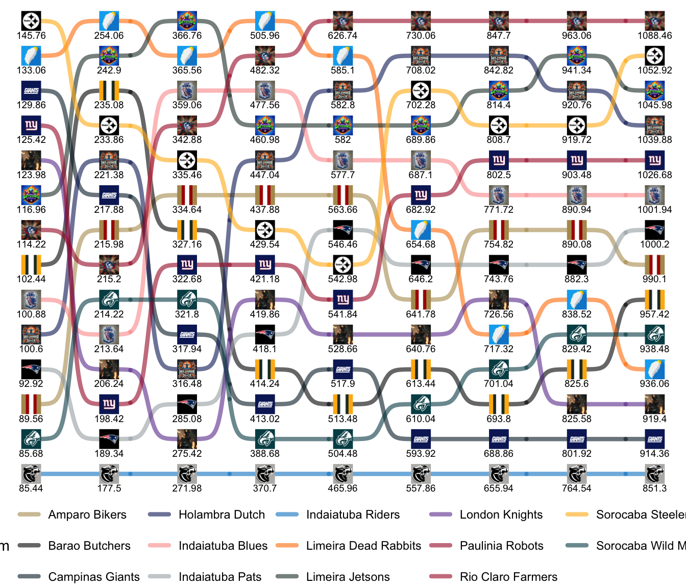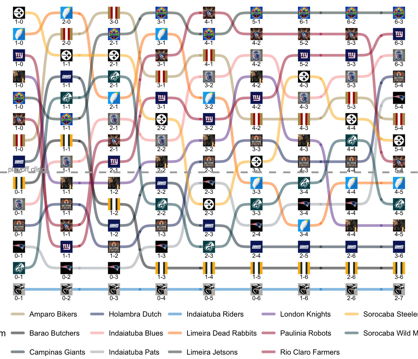League Leaders: Jetsons, Farmers, Blues, Dutch, Pats, Bikers.
