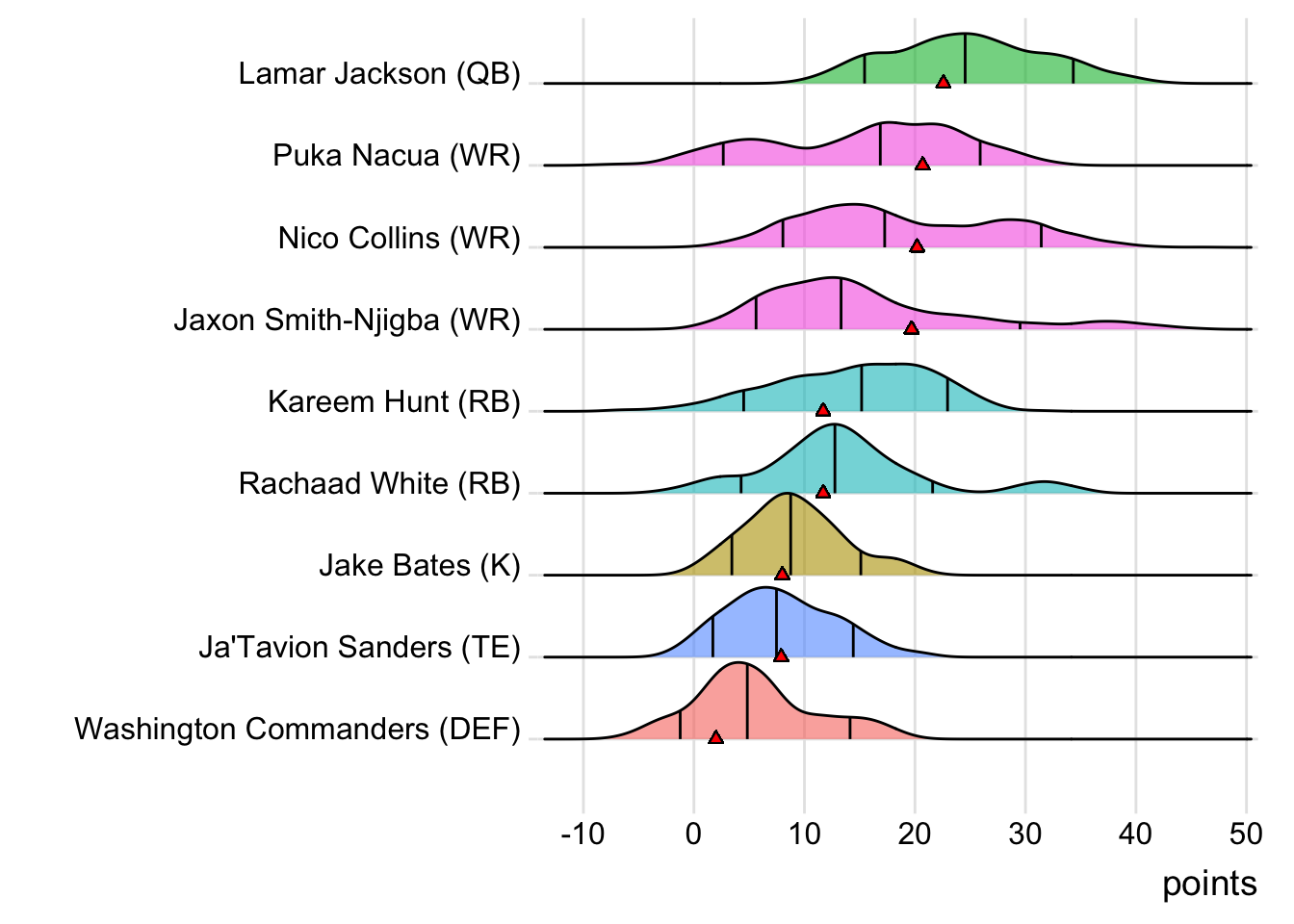While Ja’Marr Chase led Paulinia Robots with 26.50 points in Week 11, Jackson paced the squad this week with 22.58.