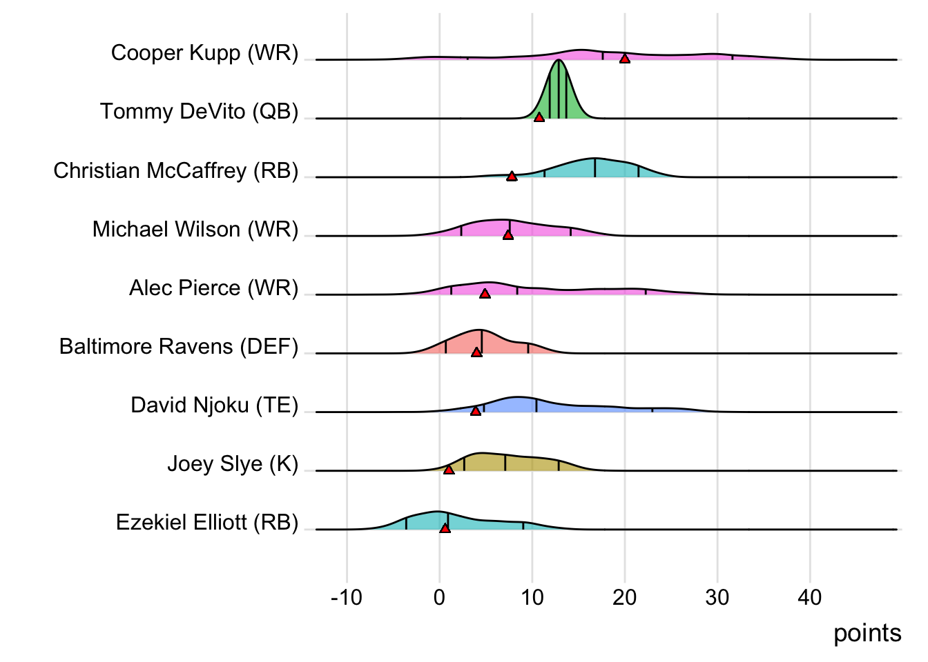 | Saquon Barkley | RB | PHI | 46.2 | 65.2 | ![]() |