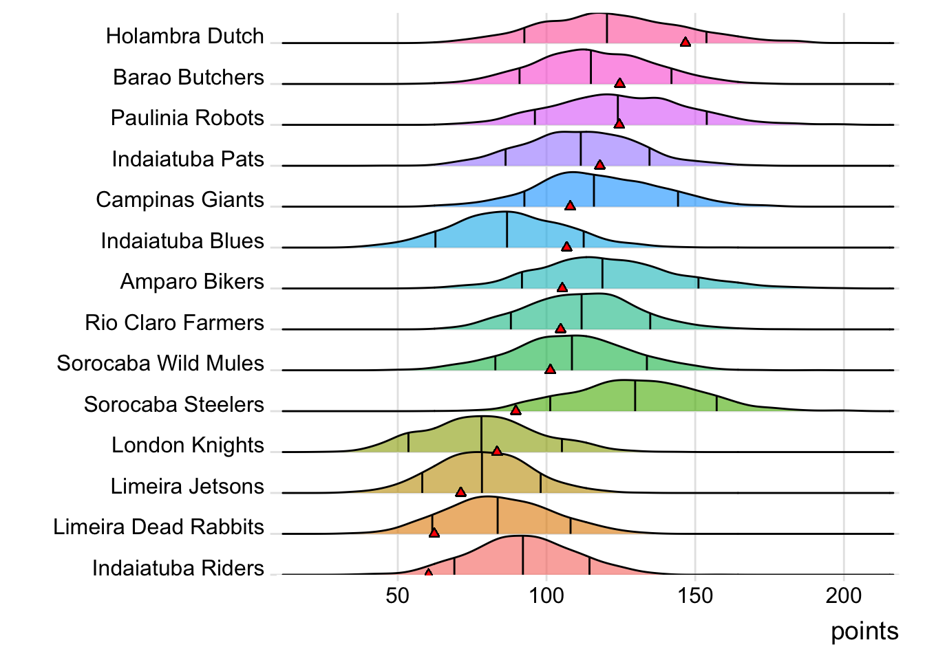 Campinas Giants has now beaten their projected score five weeks in a row.
