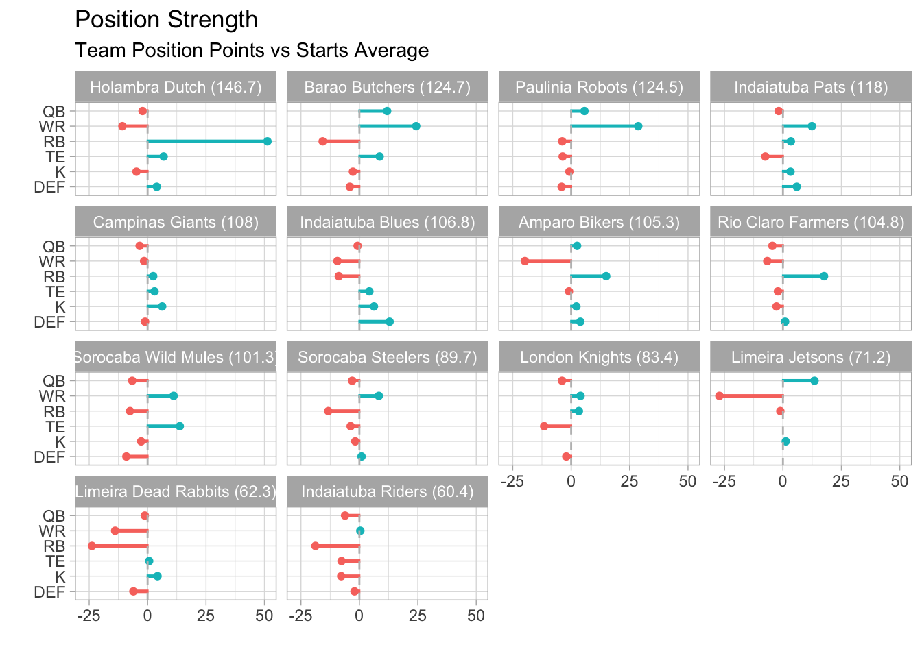 Holambra Dutch and Limeira Jetsons both won this week, even though neither had a top-30 scoring WR.