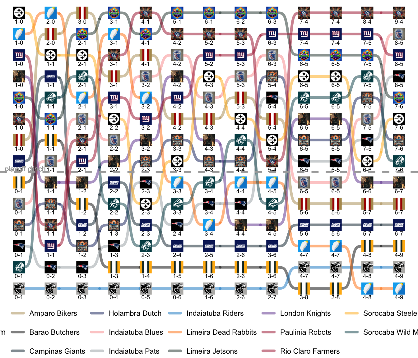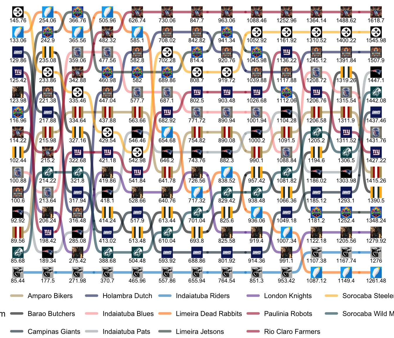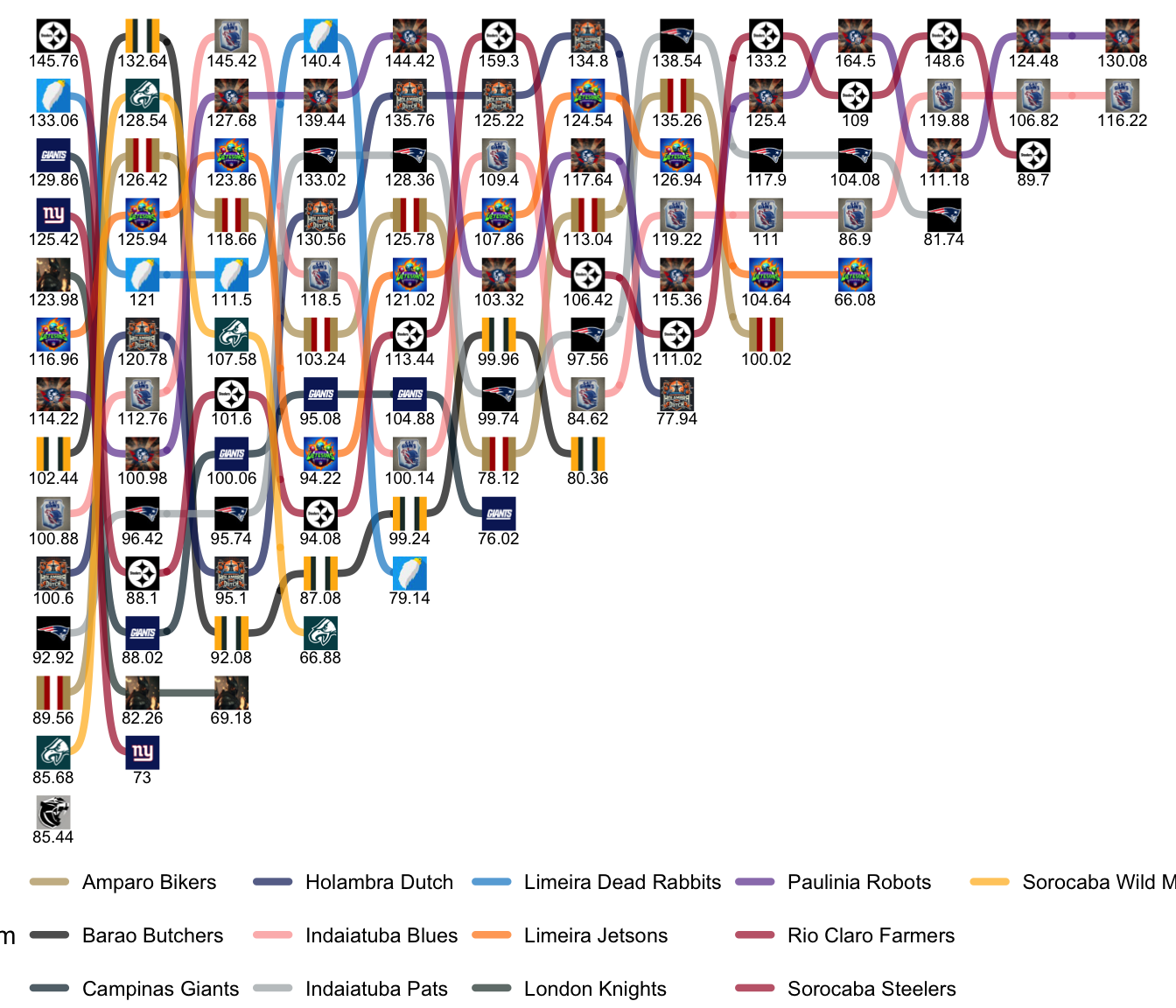 League Leaders: Robots, Blues, Farmers, Pats, Jetsons, Steelers.