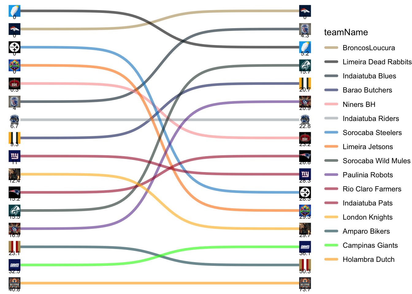 | Limeira Dead Rabbits | 0.0 | 0.00 |