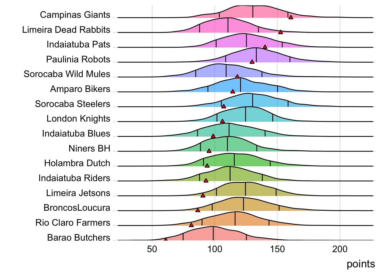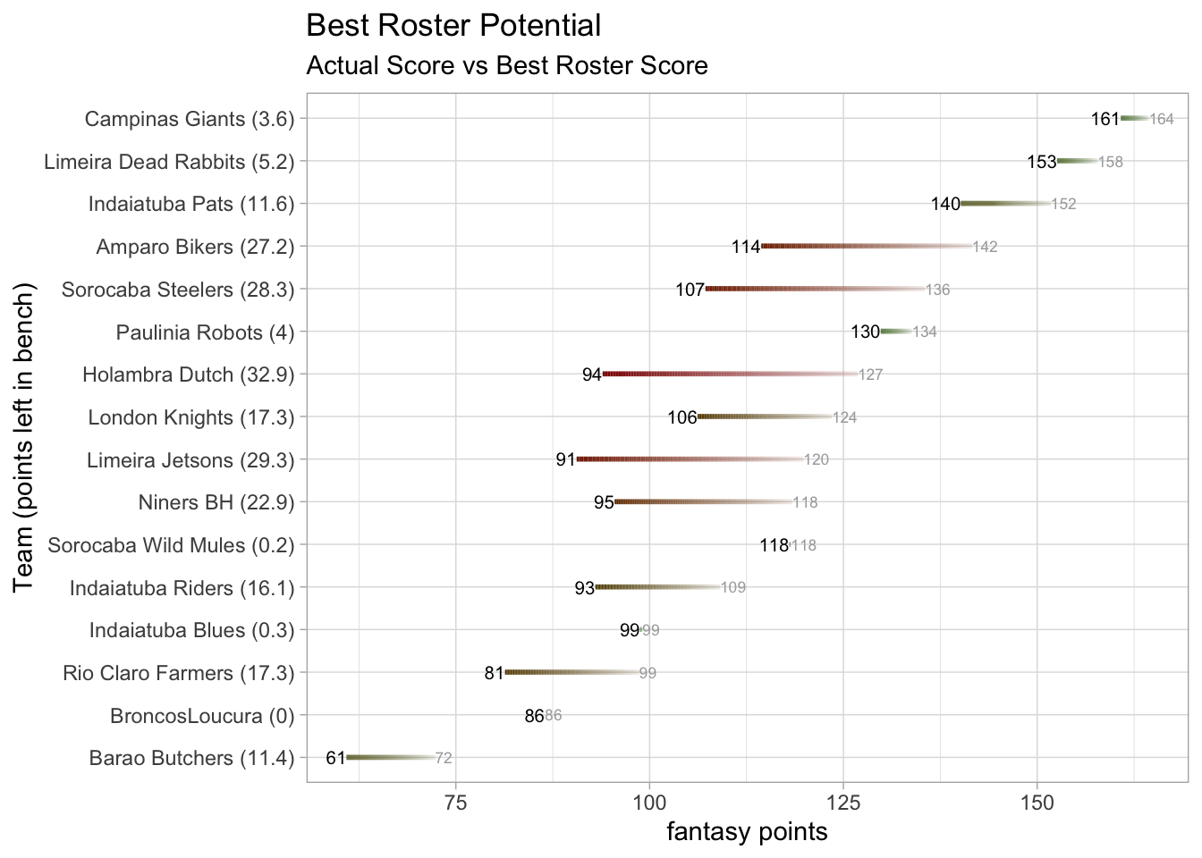 Limeira Dead Rabbits beat their projections by a higher percentage than anyone else in the league this week. They put up 152.58 points when they were only projected 110.96.