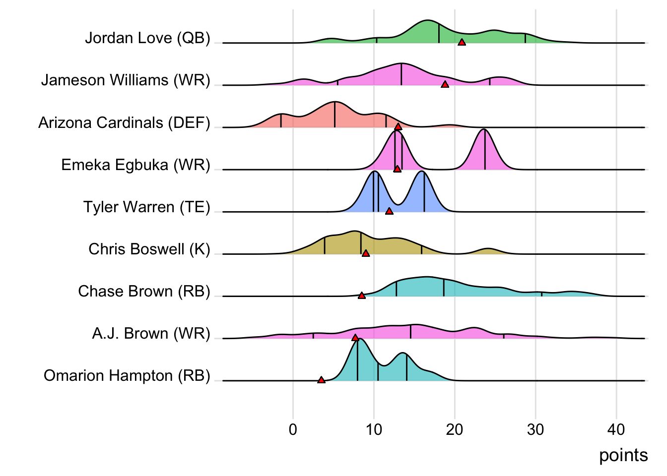 Limeira Dead Rabbits was ahead of the curve with their wideouts, as they started two of the league’s top-five overall WRs this week (including St. Brown, who was best overall).