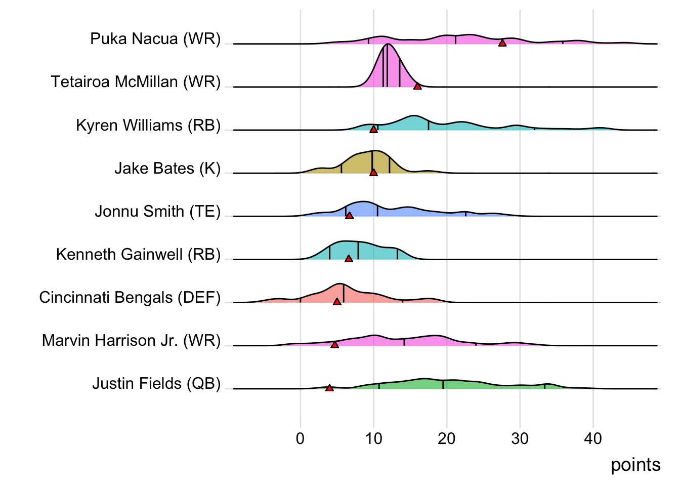 | Rome Odunze | WR | CHI | 31.8 | 71 | ![]() |