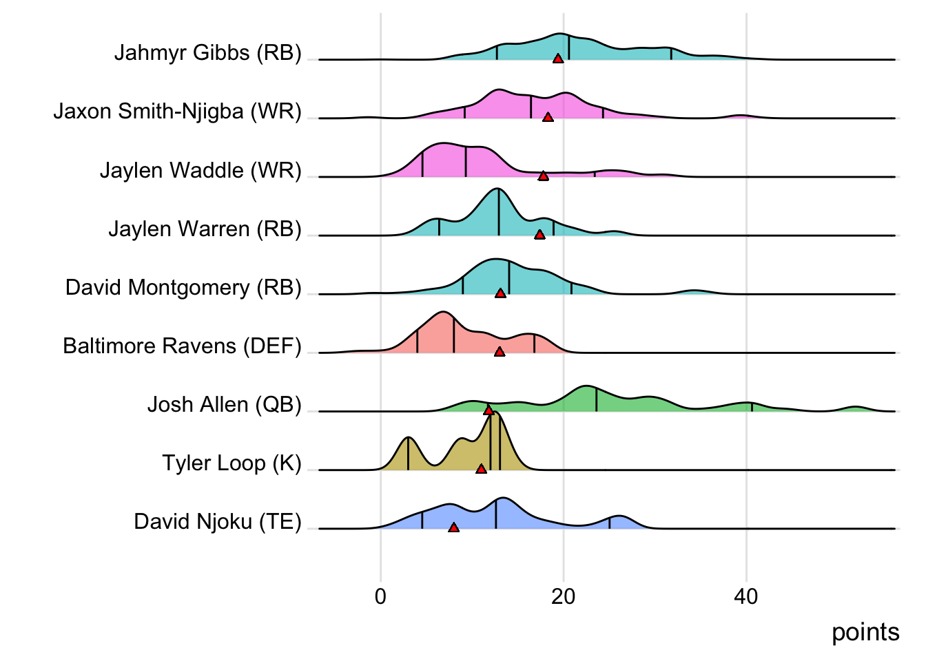 | Amon-Ra St. Brown | WR | DET | 39.2 | 71 | ![]() |