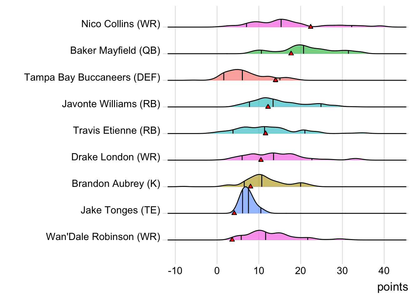 First-round draft picks averaged 14.41 points this week, but actually underperformed when compared to their second-round counterparts (who averaged 15.31).