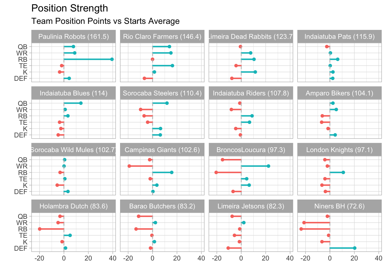 In addition to the fantasy victory, Limeira Dead Rabbits was savvy enough to pick winners in real football, as well. Among all of their starters, TreVeyon Henderson is the only one that didn’t play on a winning NFL team this past week.