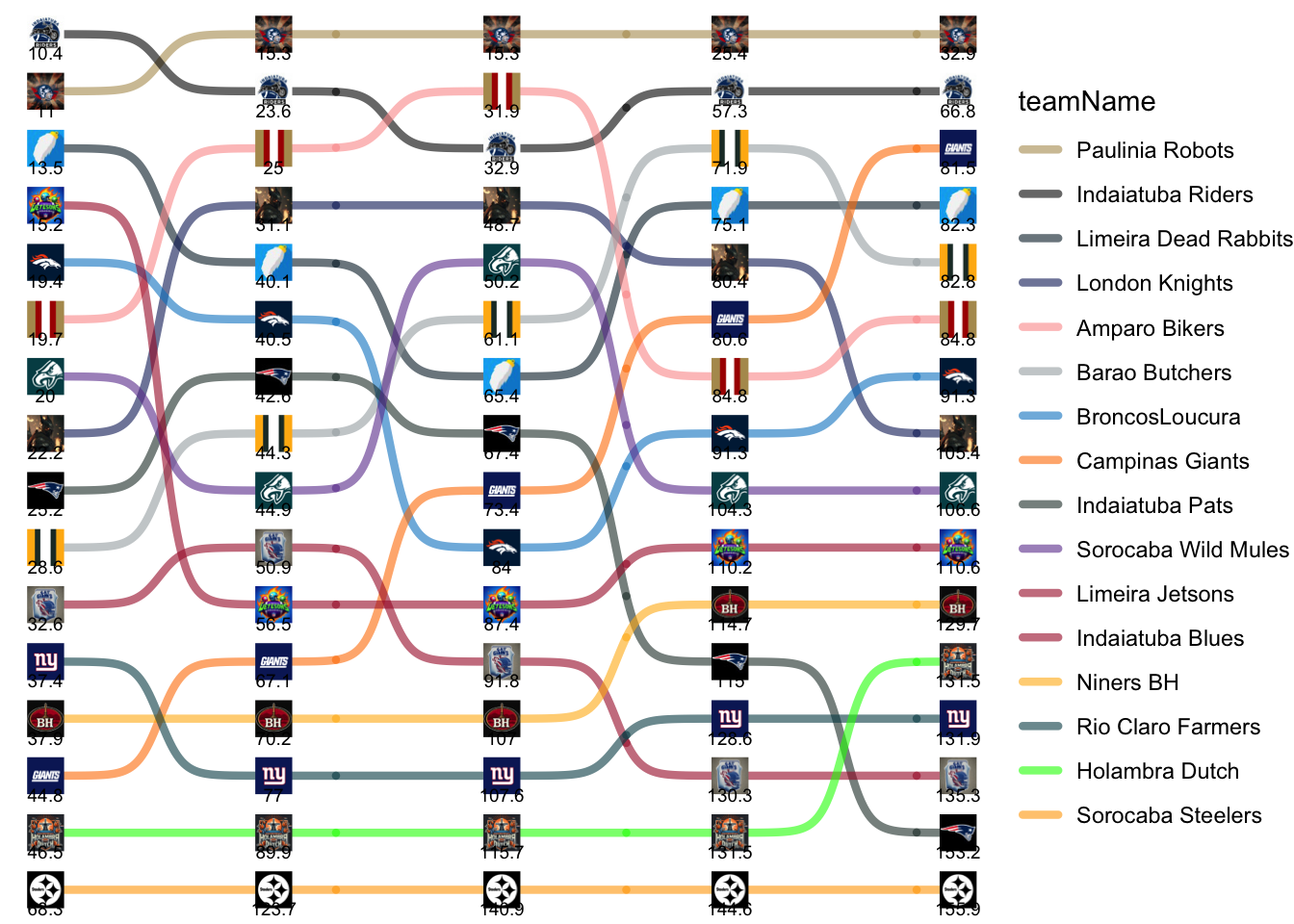 | Limeira Dead Rabbits | 13.50 | 26.60 | 25.26 | 9.70 | 7.20 |