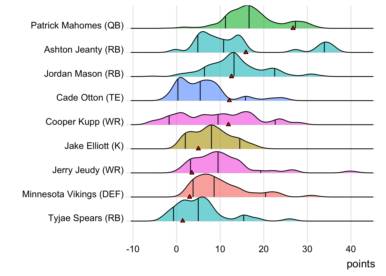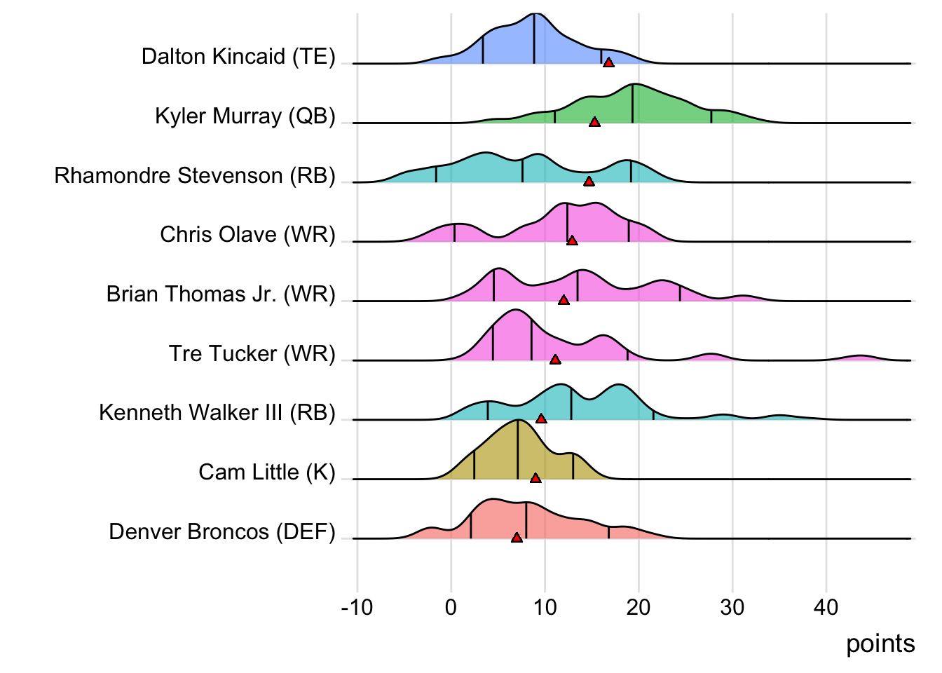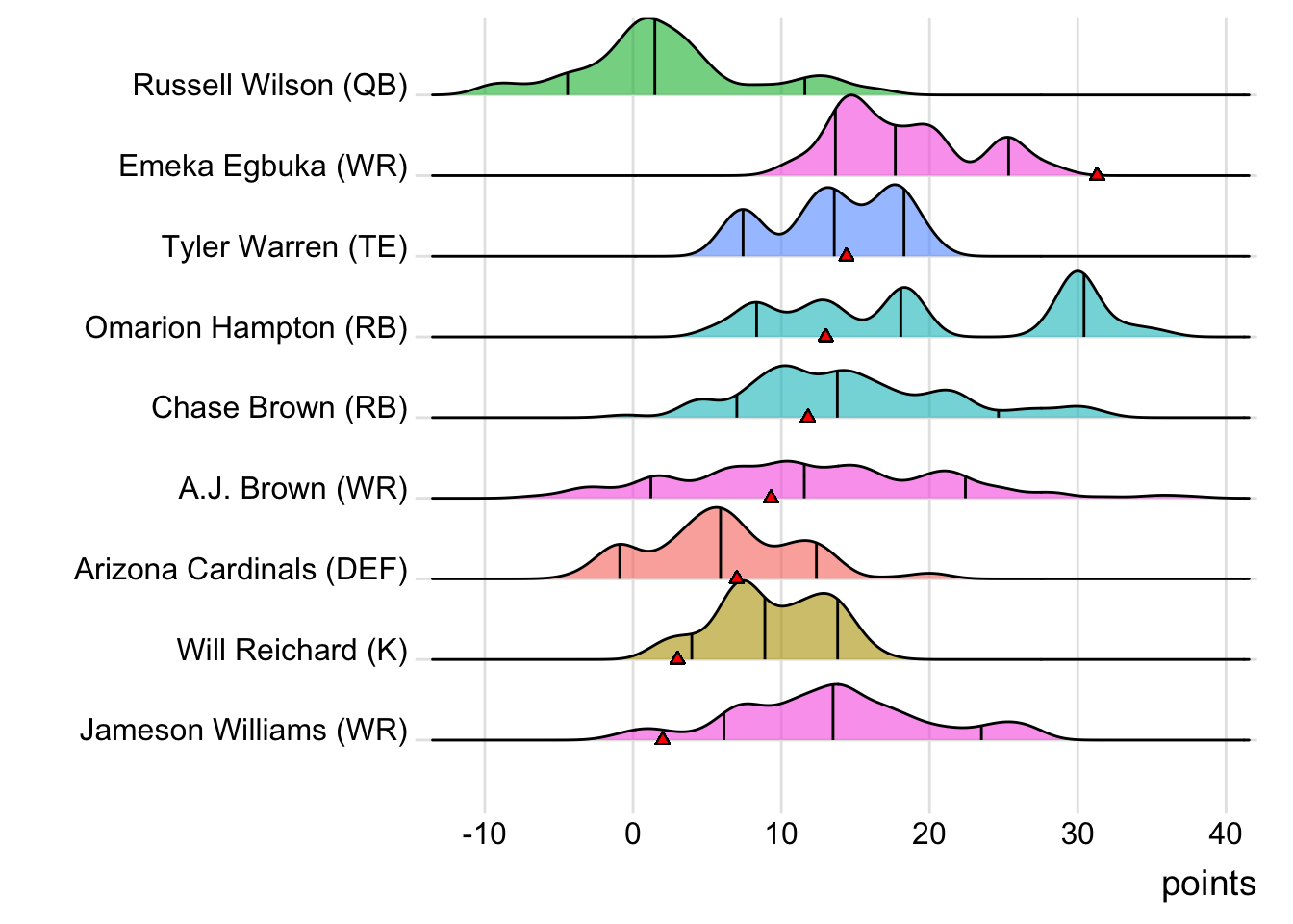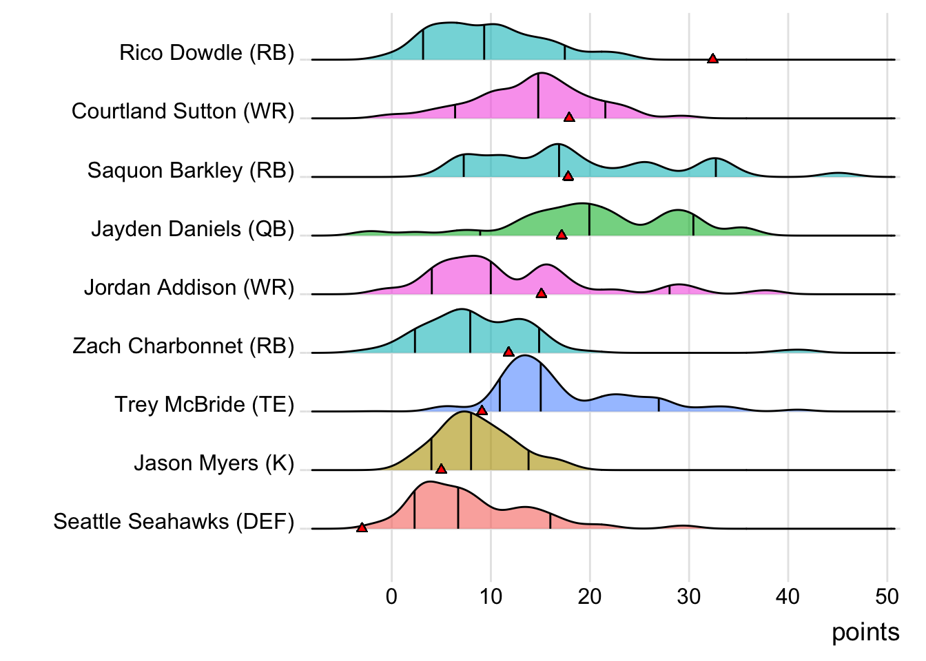 On BroncosLoucura, the Seattle Seahawks DEF represented one of two total league starters to post a negative score (and the only defense in the red ). Saquon Barkley probably deserved more touches for BroncosLoucura, as he put up an efficient 88 all-purpose yards on just nine total touches.