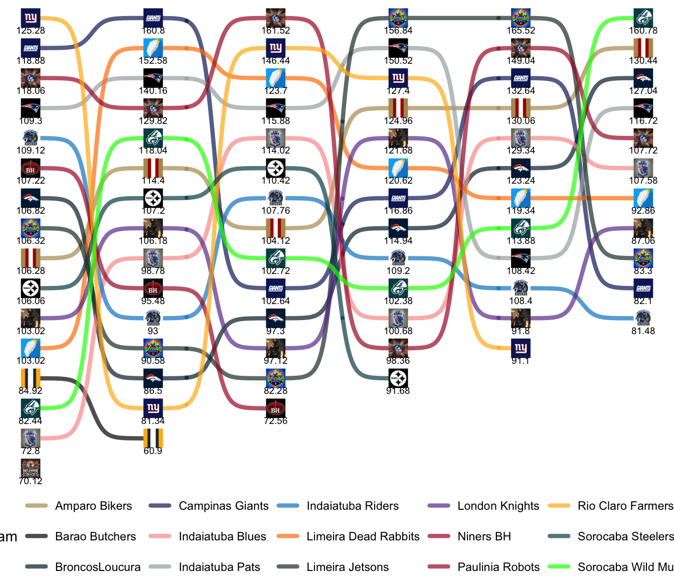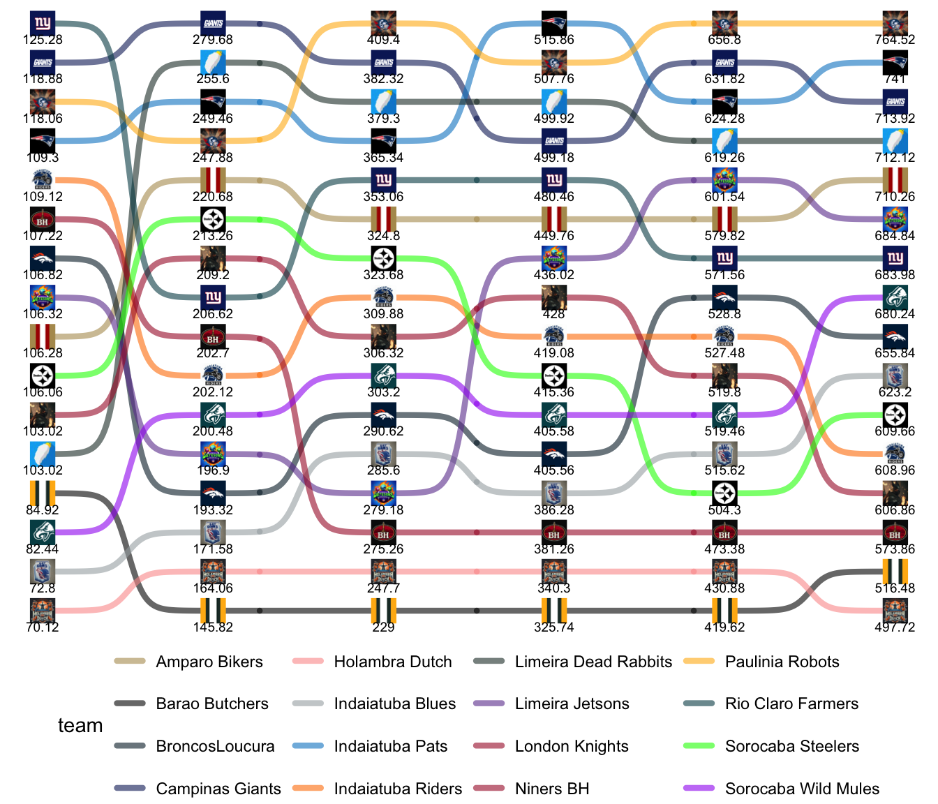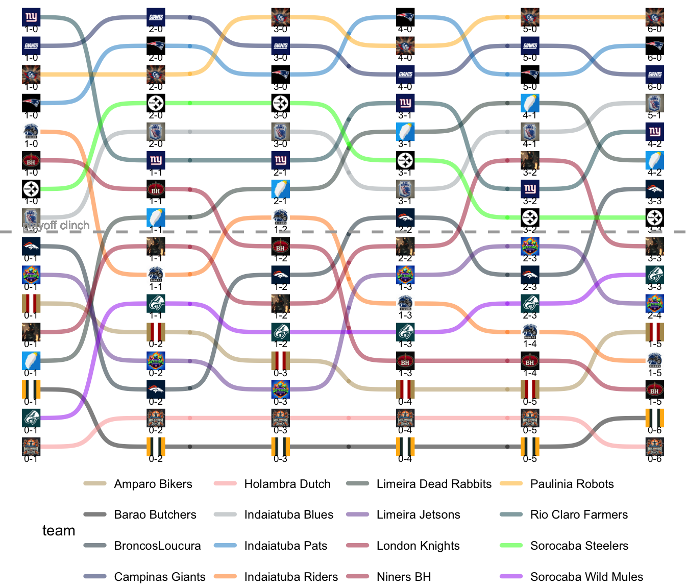 League Leaders: Robots, Pats, Giants, Blues, Farmers, Rabbits.