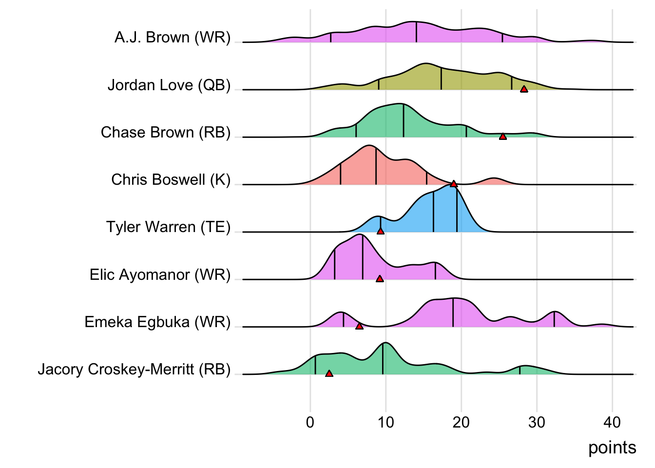| Tucker Kraft | TE | GB | 33.3 | 66.9 |