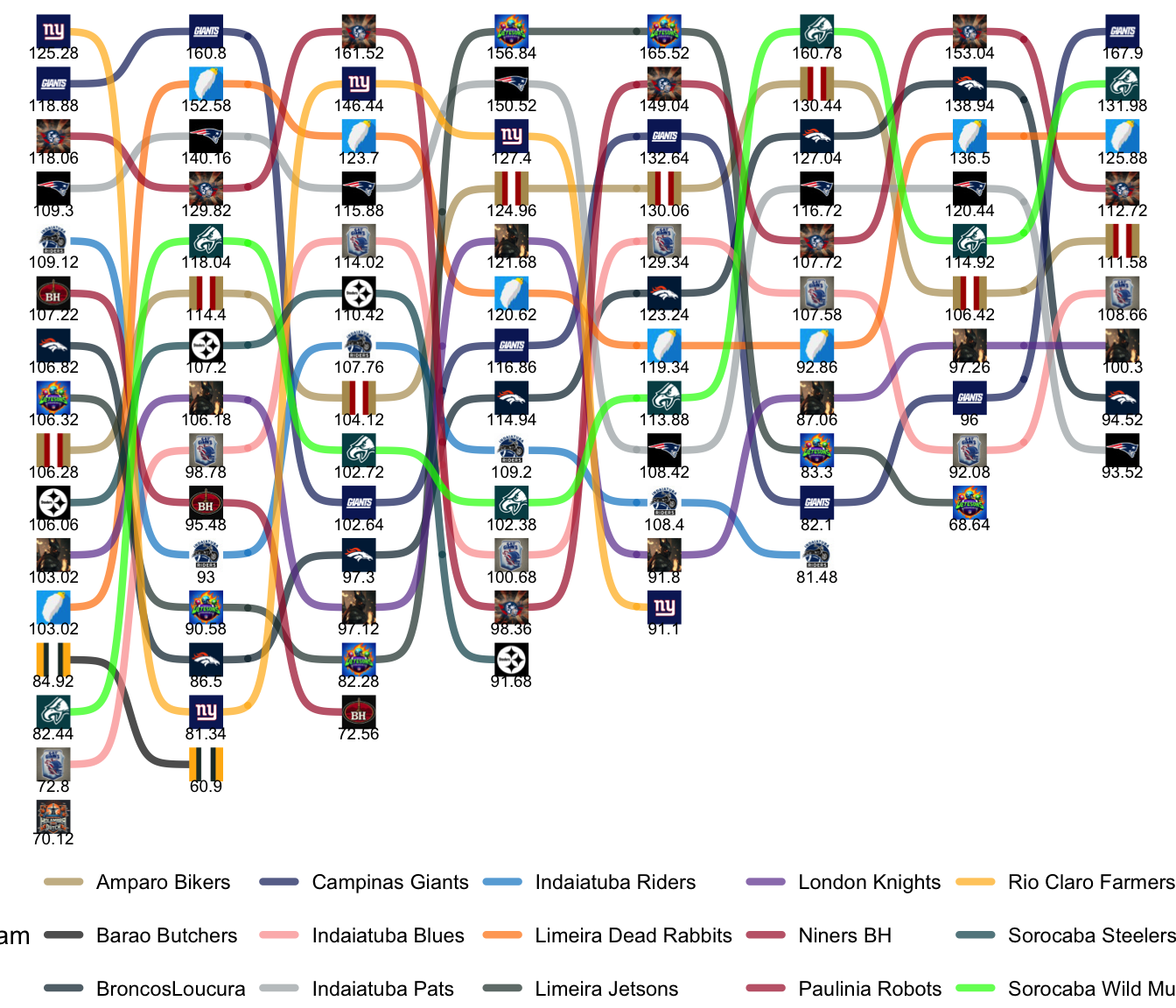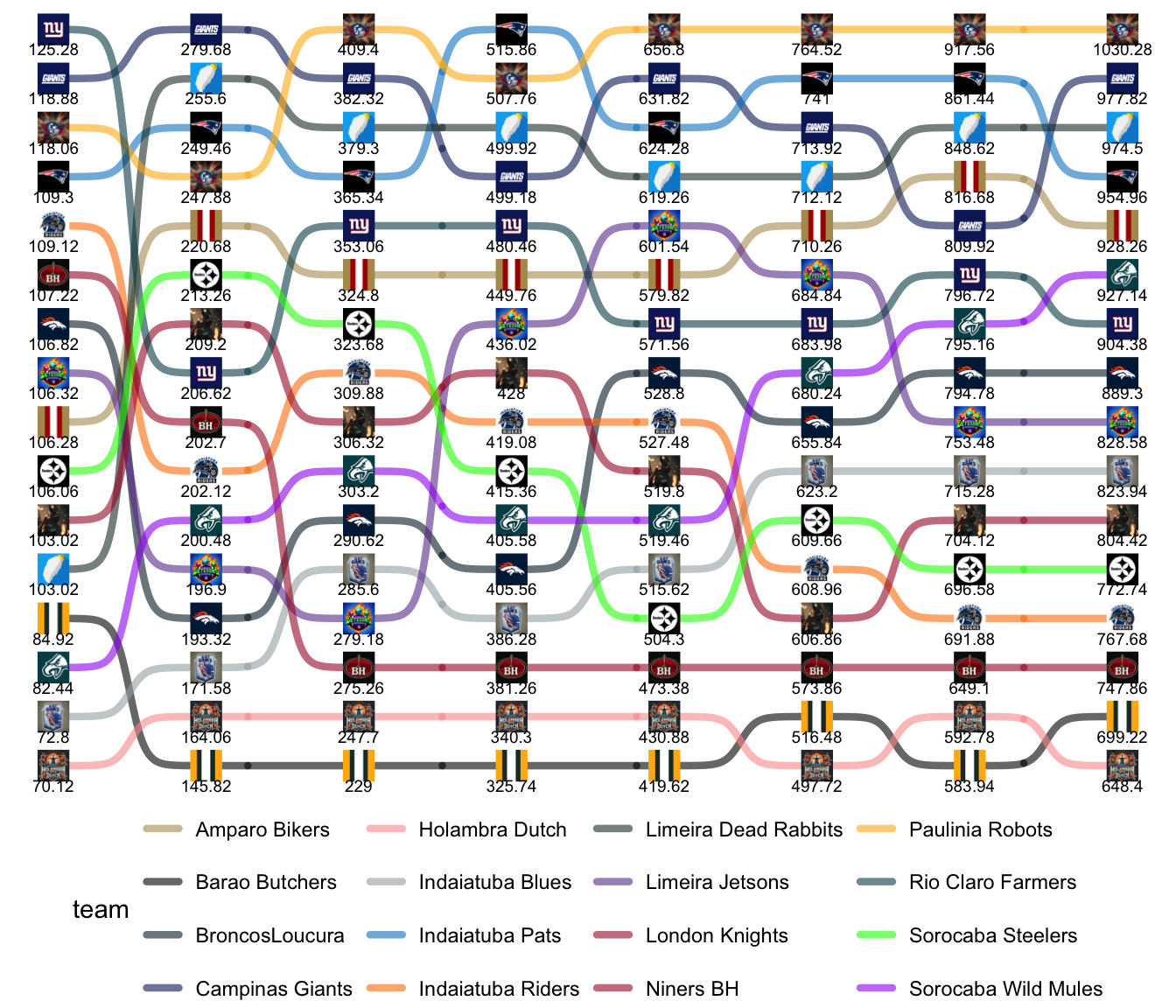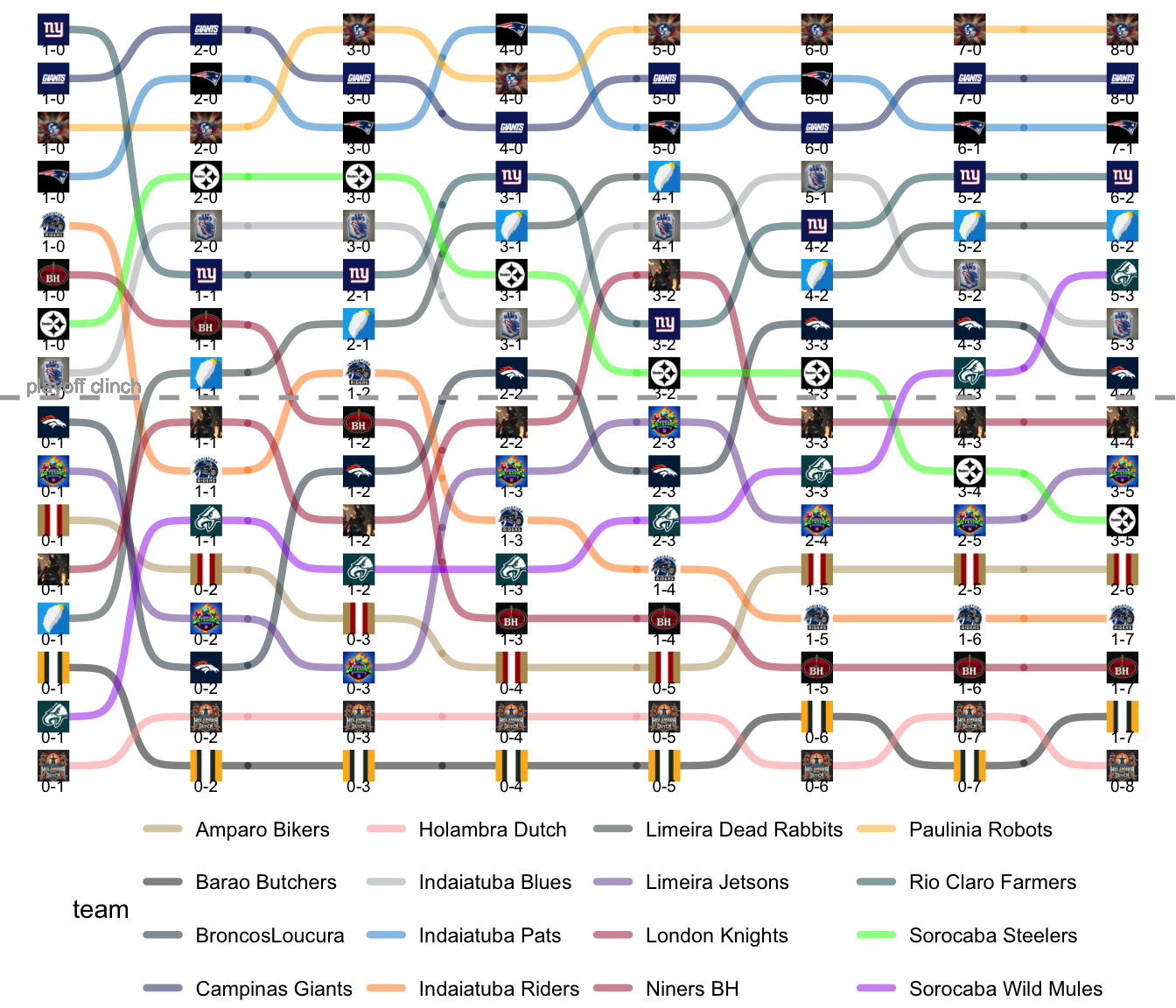 League Leaders: Robots, Giants, Pats, Farmers, Rabbits, Mules.