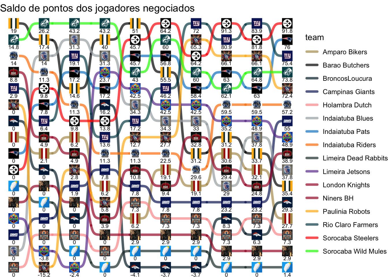 | Sorocaba Steelers | 0.0 | 9.80 | 0.00 | 4.00 | 31.94 | 18.46 | 0.00 | 27.06 | -9.50 | 10.00 |