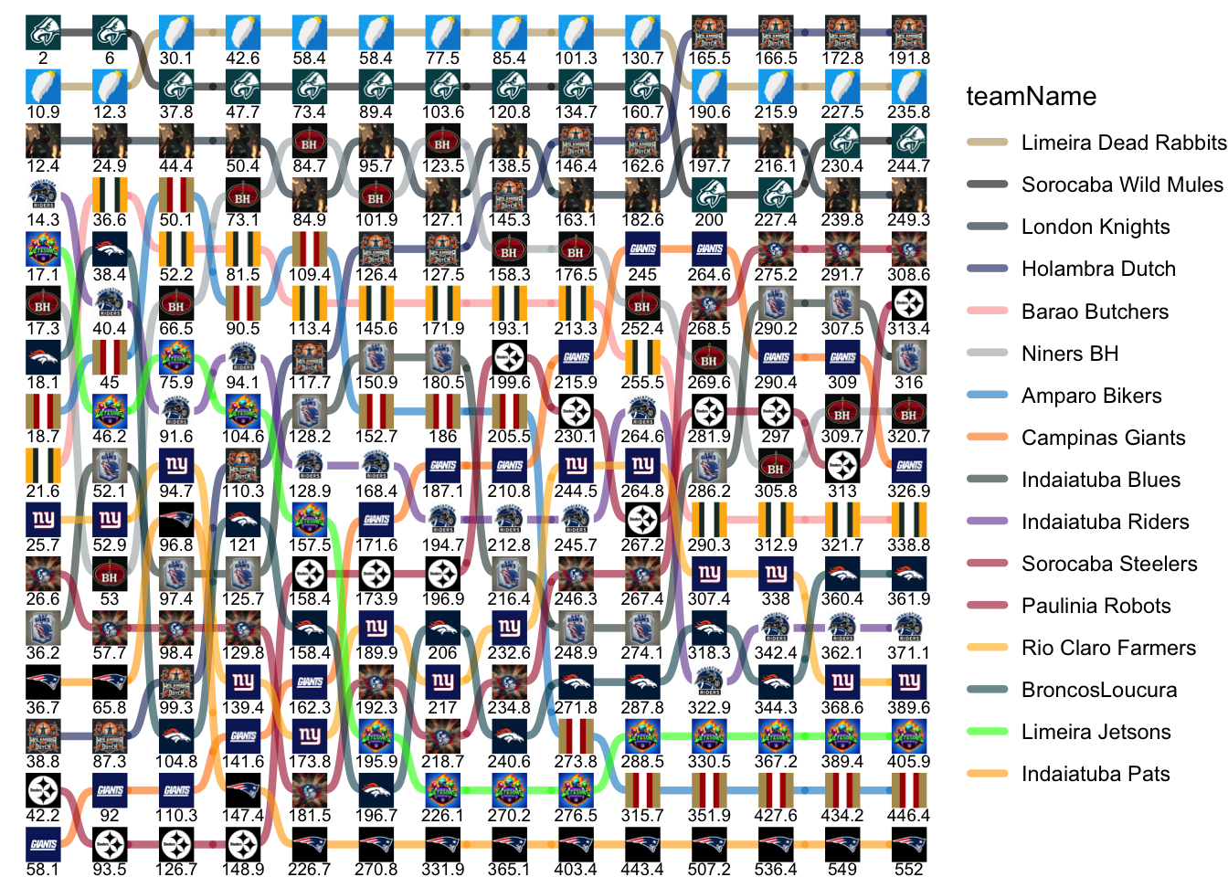 | teamName | 1 | 2 | 3 | 4 | 5 | 6 | 7 | 8 | 9 | 10 | 11 | 12 | 13 | 14 |