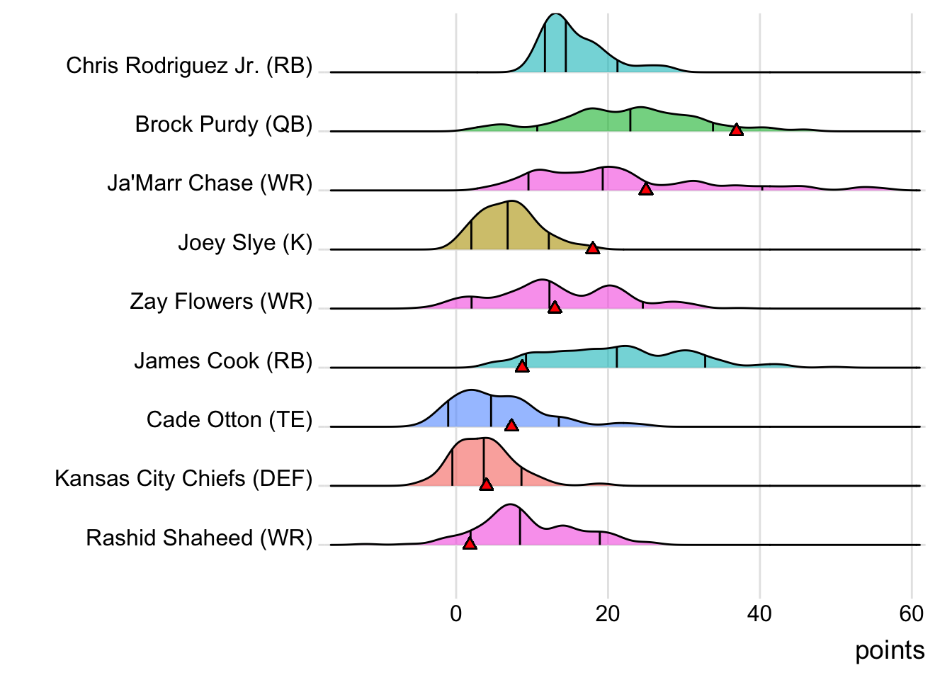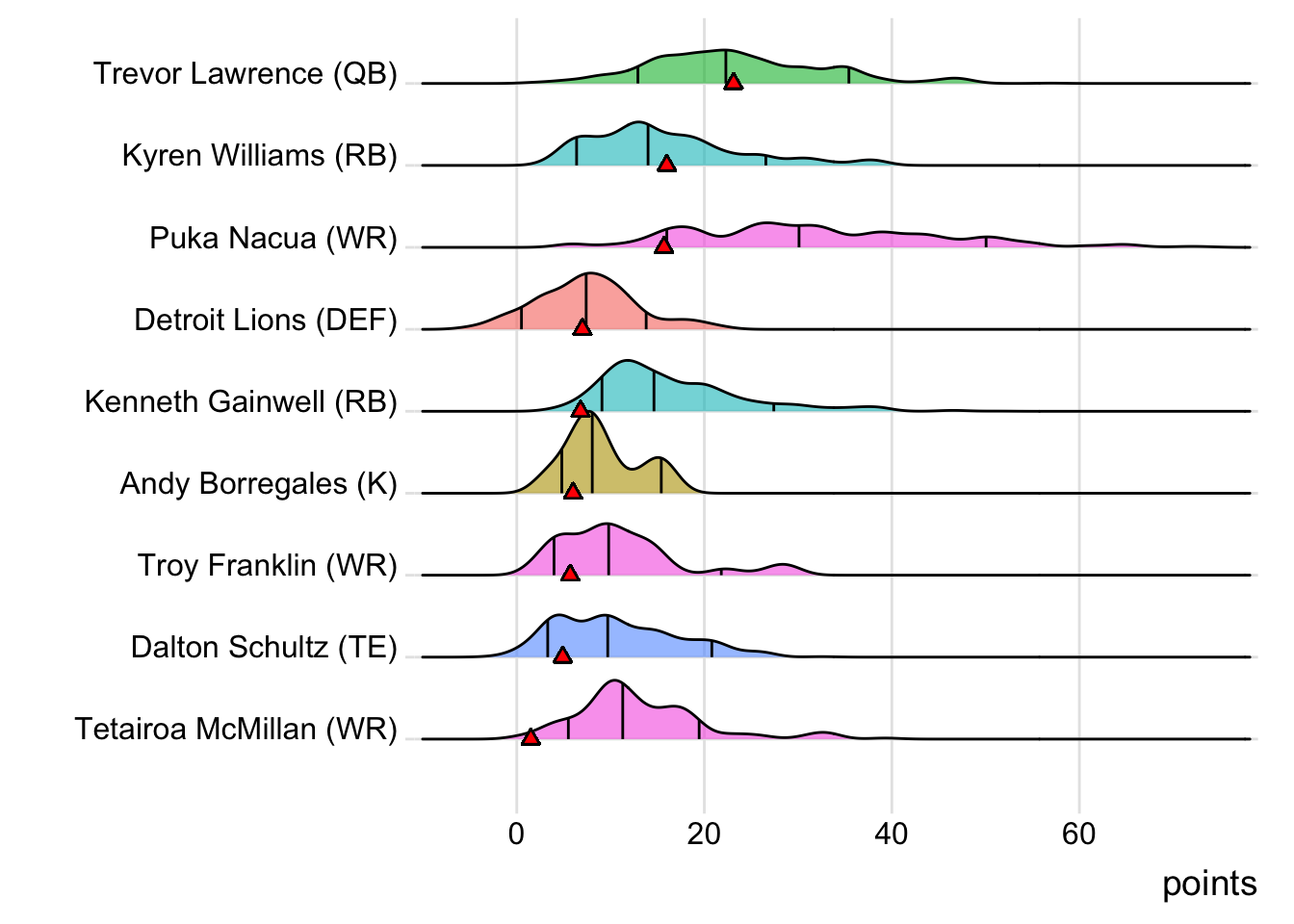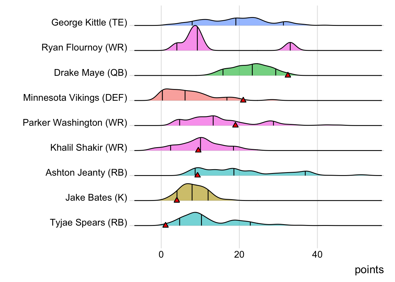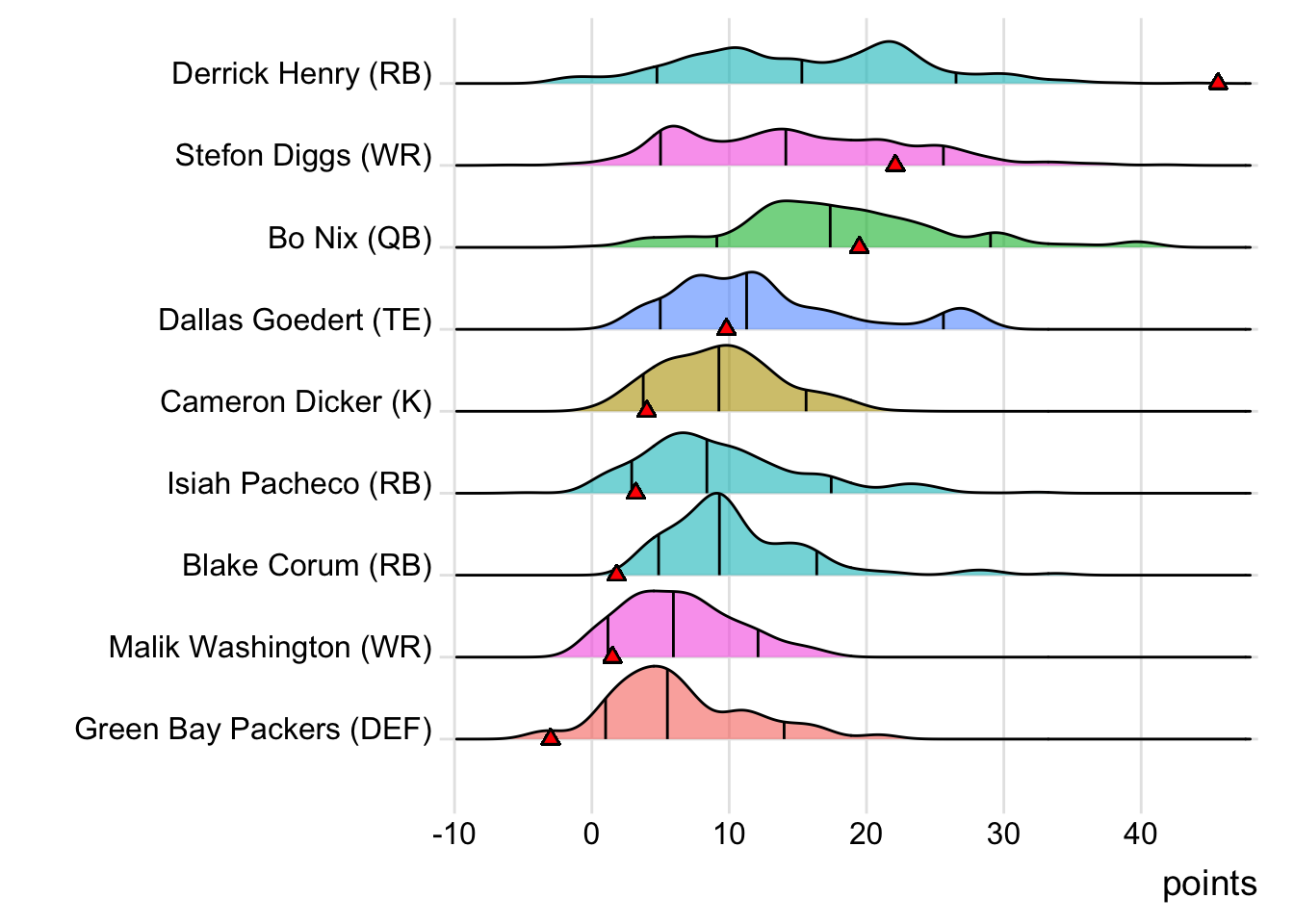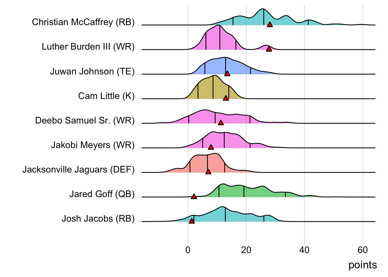 | Stefon Diggs | WR | NE | 22.1 | 67.7 |