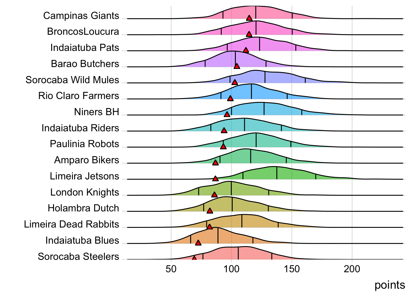 Campinas Giants has now beaten their projected score four weeks in a row.