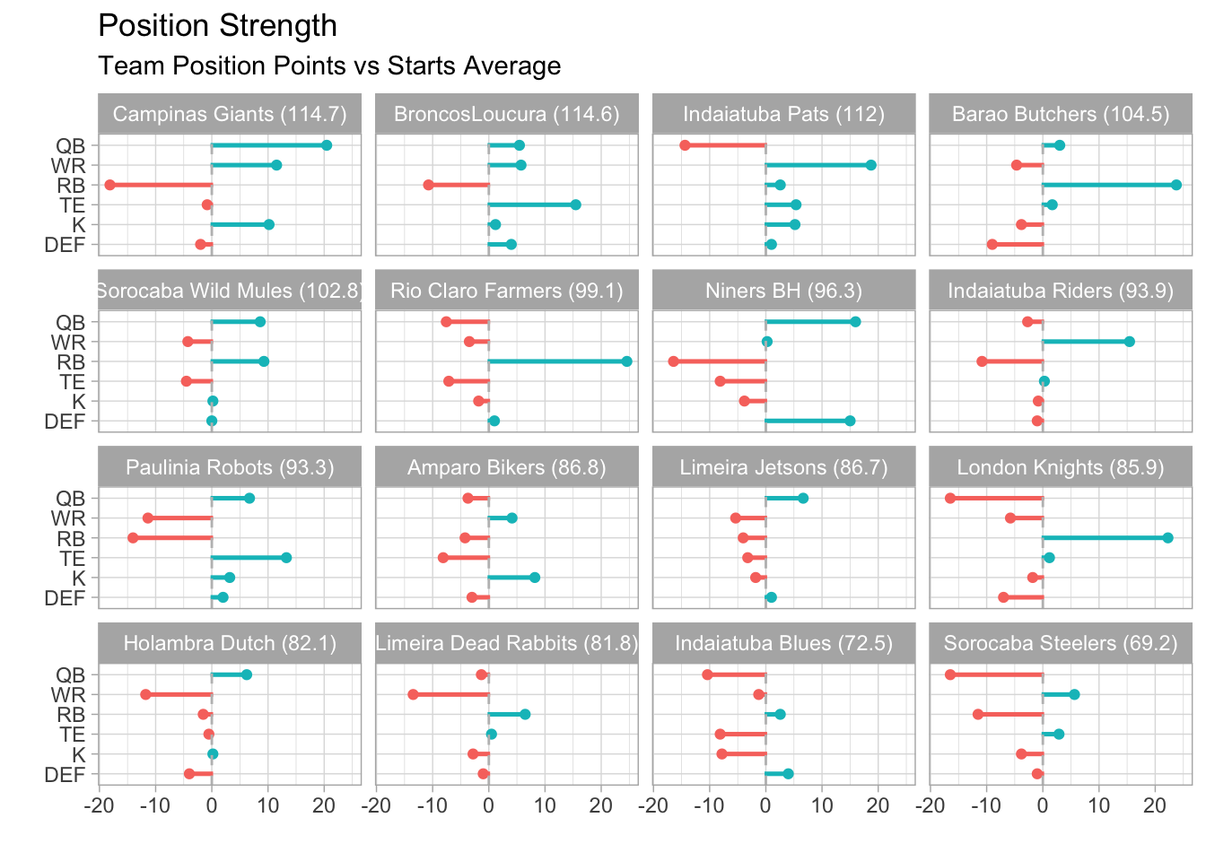Rio Claro Farmers, Indaiatuba Pats, and two others all won this week, even though none of them had a top-15 scoring QB.
